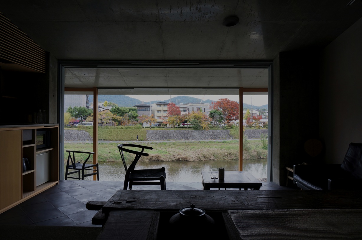 着いてすぐ、窓辺でお茶を飲みながら眺める鴨川。照明を落とした室内から見る、静寂の鴨川。朝風呂のあと、やわらかい光に包まれた鴨川。様々な表情の鴨川と向き合う時間は、とても贅沢に感じられました。